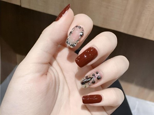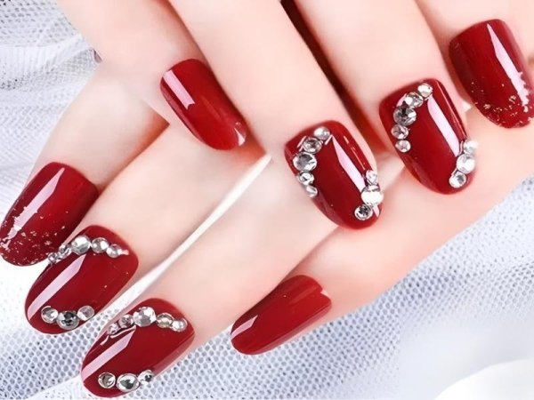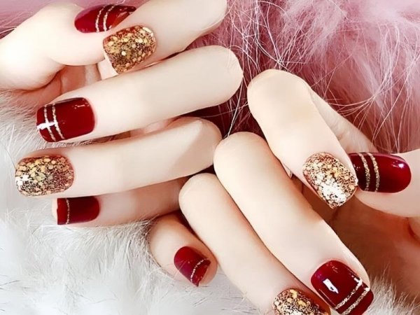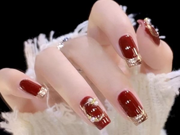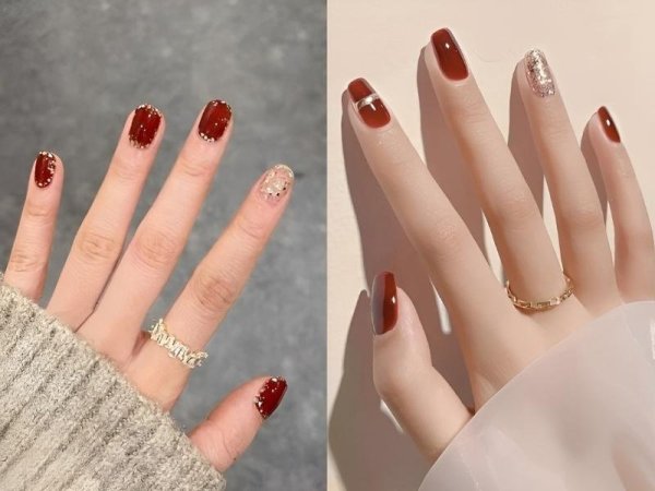 Màu đỏ rượu là màu móng tay đẹp sáng da (Nguồn: shopee.vn) Đính đá bạc là một cách trang trí hợp lý đối với màu đỏ rượu (Nguồn: gumac.vn – Pinterest) Chi tiết màu vàng kết hợp hài hòa với màu móng đẹp đỏ rượu (Nguồn: RieNail) Màu đỏ rượu là màu sơn móng tay đẹp sang, quý phái (Nguồn: t.me, @hailsaestheticdiary)Nail màu hồng pastel
