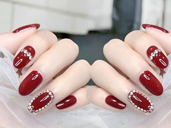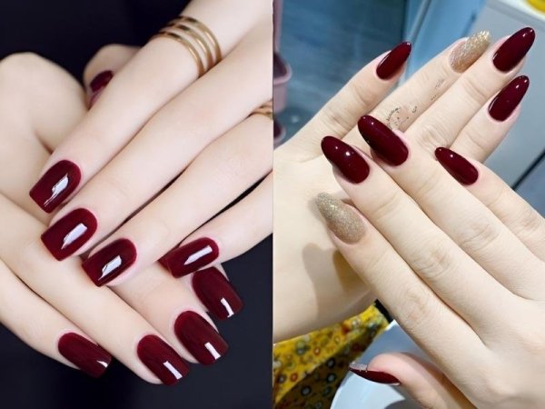 Màu đỏ rượu là một màu nail đẹp tôn da dành cho những đôi tay trắng sáng. Màu sơn móng tay đẹp này mang đến một bộ nail quyến rũ, thu hút, phù hợp với các dịp tiệc tùng, lễ hội. Vì các mẫu nail màu đỏ rượu khá nổi bật, bạn nên ưu tiên những bộ móng ngắn vừa phải và được tạo hình vuông, tròn bầu thay cho móng dài nhọn.