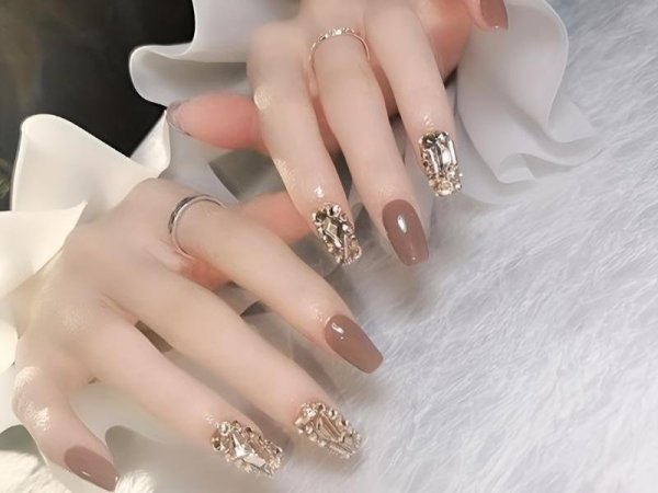 Màu sơn móng tay đẹp nâu tôn da, giúp da sáng hơn (Nguồn: Shahin Sarkar, Joy Phanie) Màu nâu phủ ánh nhũ, kim tuyến không không kén dáng móng (Nguồn: Dreamers world, Viviandoan) Màu nâu là màu sơn móng tay đẹp không kén da và sang trọng khi đính đá (Nguồn: temu.com) Phối nail các màu nâu theo cường độ đậm nhạt để tạo bộ móng độc đáo(Nguồn: @ngoccam648 – Pinterest)Nail màu nude