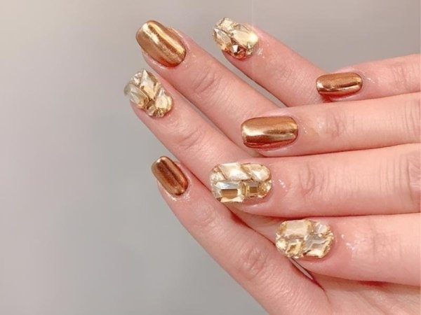 Màu sơn móng tay ánh kim luôn được các quý cô ưa chuộng bởi hình ảnh lấp lánh, sang trọng mà màu sắc này mang lại. Các bạn có thể phủ lớp metallic ánh kim trên nền màu móng khác nhau để tạo ra những phong cách khác nhau. Những màu móng dễ kết hợp với màu metallic ánh kim là baby blue, bạc crom, tím lavender, xanh neon, vàng ánh kim,… Màu nail ánh kim đại diện cho vẻ đẹp sang chảnh, sành điệu, là một người bạn đồng hành cùng các quý cô trong các bữa tiệc tối.