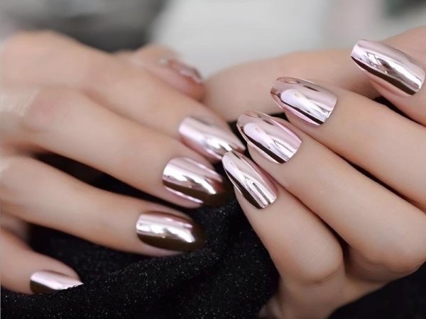 - Sơn tráng gương: Sơn tráng gương là một phương pháp sử dụng bột chrome phủ lên lớp móng, giúp móng sáng bóng và lấp lánh khi ra nắng. Màu móng tay đẹp sáng da kết hợp phương pháp tráng gương sẽ tăng khả năng tôn da.
