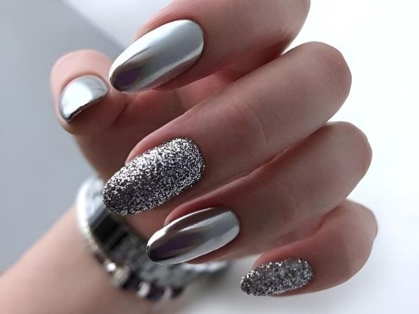 Nail màu bạc là một màu sơn móng tay đẹp không kén dáng móng. Màu sắc này phù hợp với nước da phái nữ châu Á, giúp các ngón tay mảnh khảnh, thon dài hơn rất nhiều. Màu sơn bạc mang đến phong cách quý phái, sang trọng và thanh lịch cho các cô nàng thời thượng. Các bạn có thể tráng gương, đính đá, phối móng đậm nhạt, vẽ hoạt tiết để biến tấu bộ nail màu bạc của mình.