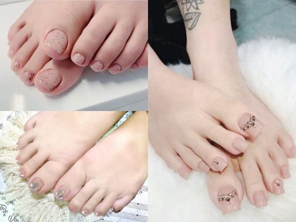 Sơn móng chân màu nude tôn lên vẻ đẹp tự nhiên và thanh lịch cho mẫu nail chân (Nguồn: Dan Con Nail – Pinterest, Hiền Nguyễn – Pinterest, Nail Bin – Pinterest) Sơn móng chân màu nude có thể kết hợp đính đá nhỏ hoặc những họa tiết đơn giản, nhẹ nhàng (Nguồn: Nail Bin – Pinterest, thuphuong020399 – Pinterest, Thao Quynh Nail – Pinterest)> Xem thêm: Mách nàng 20+ mẫu nail đính đá đẹp sành điệu, cuốn hút