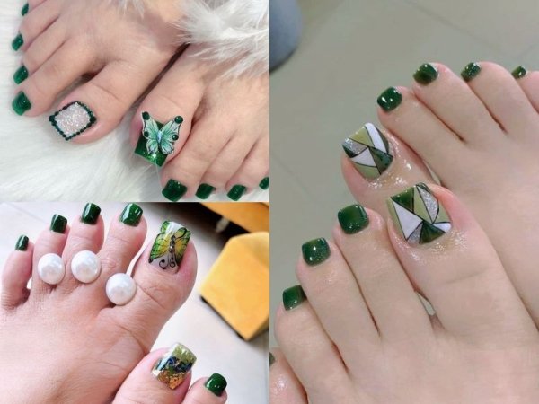 Màu sơn này cũng dễ dàng kết hợp với các kiểu họa tiết trang trí như vẽ bướm, đính đá,…. để bạn tạo nên phong cách riêng của mình. Màu móng chân tôn da xanh rêu sẽ rất phù hợp với phong cách thường ngày gọn gàng, trưởng thành và có phần sắc sảo, nữ tính.