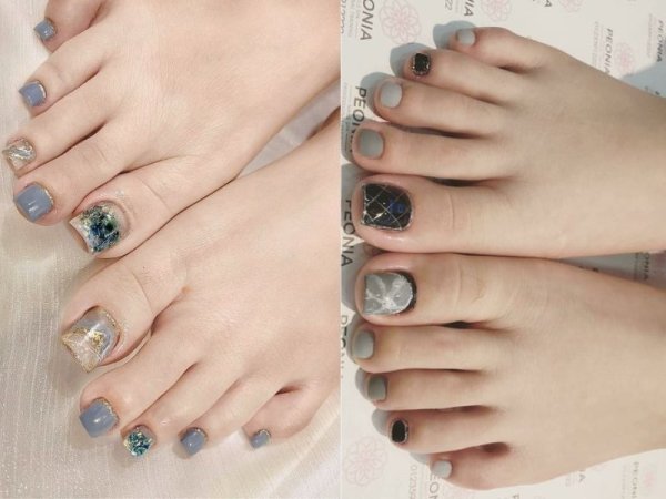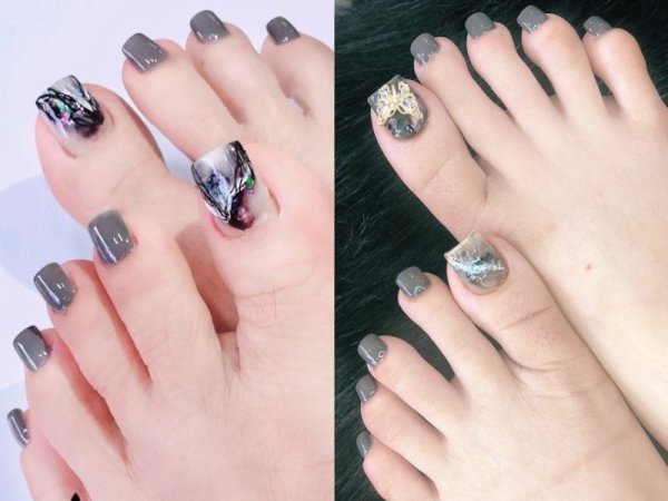 Mẫu móng chân màu xám trầm giúp trắng da, phù hợp cho các bạn có làn da ngăm, đen (Nguồn: Thỏ Nail – Pinterest) Sơn móng chân màu xám xen kẽ màu đen tạo nên vẻ đẹp quyền quý, sang trọng (Nguồn: Thỏ Nail – Pinterest, Quỳnh Quỳnh – Pinterest) Những kiểu họa tiết vân đá kim tuyến vừa thời thượng, vừa thanh lịch, độc đáo (Nguồn: Polish Nail – Pinterest, Lê Sy – Pinterest)Màu sơn móng chân làm trắng da trắng ngà