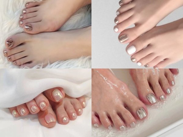 Mẫu nail chân tráng gương với lớp phủ bóng như gương và phản xạ ánh sáng giúp làm nổi bật bàn chân (Nguồn: trananh1312 – Pinterest, Mit’s House – Pinterest, Seoul Academy – Pinterest) Đây là mẫu móng chân đẹp, đơn giản nhưng giúp bàn chân thon, dài hơn (Nguồn: Dilys_Chilly – Pinterest, Làm Đẹp Mỗi Ngày – Pinterest, Alice_Mosly – Pinterest, Thutrang – Pinterest)Màu sơn móng chân làm trắng da kiểu mắt mèo