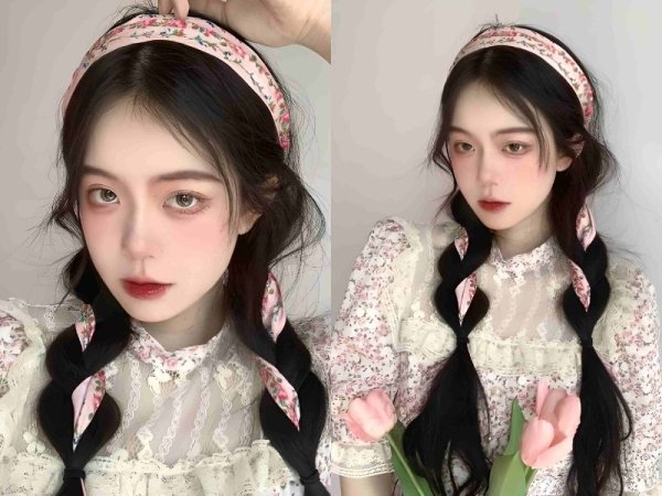 Bạn nên lưu ý đến màu sắc và hoạ tiết của khăn Bandana sao cho phù hợp với trang phục (Nguồn: Douyin id allblued) Khăn Bandana phối cùng tóc tết 2 bên mang lại vẻ ngoài mới lạ, trẻ trung cho các cô nàng (Nguồn: Douyin id C1102506141)Kiểu tết tóc mái con sâu