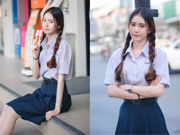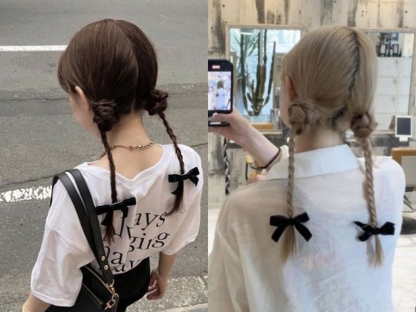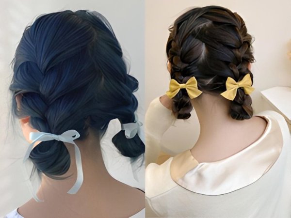 Với kiểu tết tóc đẹp và đáng yêu này, các cô gái Thái sẽ không dùng phụ kiện hoặc chỉ dùng ruy băng to bản để cột thành nơ. Ruy băng thường là các tông màu đơn sắc và trung tính như đen, trắng, kem,…