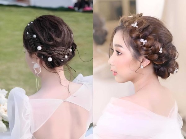 - Những kiểu tóc tết đẹp đi dự tiệc thường dùng kẹp tóc ngọc trai, ruy băng,… để tăng vẻ sang trọng, nền nã;