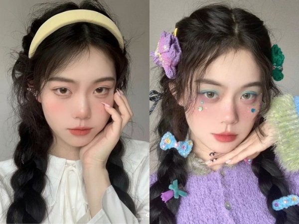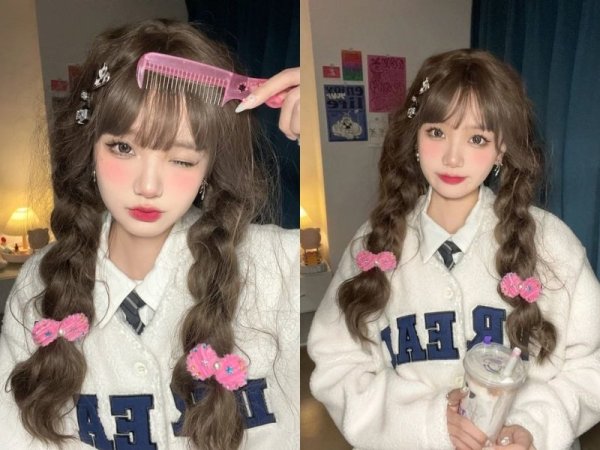 Kiểu tóc thắt bím 2 bên là một trong những kiểu tết tóc đẹp được nhiều cô nàng ưa chuộng (Nguồn: Douyin id icheesie) Các idol Kpop cũng thường xuyên lựa chọn kiểu tết tóc 2 bên khi tham dự sự kiện (Nguồn: Sport Chosun)Kiểu tết tóc nửa đầu