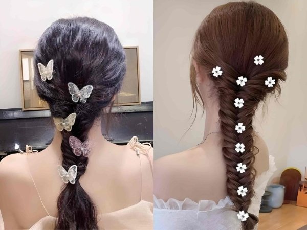 Thắt tóc xương cá là một trong những kiểu thắt tóc đẹp được nhiều bạn nữ yêu thích (Nguồn: shein) Sử dụng thêm các phụ kiện như kẹp bướm, kẹp hoa,… để tô điểm cho mái tóc (Nguồn: shein)Kiểu thắt tóc đuôi tôm