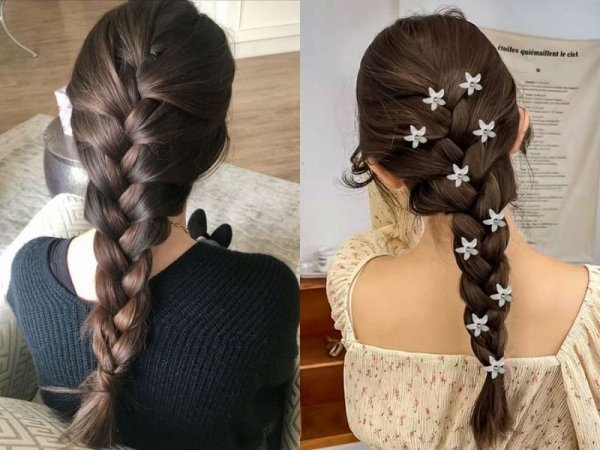 Kiểu thắt tóc đuôi tôm mang lại cảm giác vừa dịu dàng vừa đáng yêu (Nguồn: shein) Ruy băng và kẹp hoa giúp mái tóc tết đuôi tôm thêm phần nổi bật (Nguồn: shein)Kiểu tết tóc 1 bên