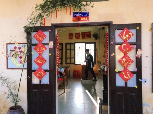 Trang trí lớp học ngày Tết cũng là một hoạt động gắn kết vô cùng thú vị cho các bạn học sinh. Khi trang trí lớp học, bạn nên chọn những kiểu trang trí gọn gàng, đơn giản để phù hợp với nội quy và không làm ảnh hưởng đến việc học tập, di chuyển. Treo một vài câu đối chúc Tết ở trước cửa và trên tường là đã đủ để tạo nên một không khí vô cùng rộn ràng trong lớp học.