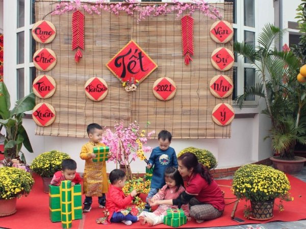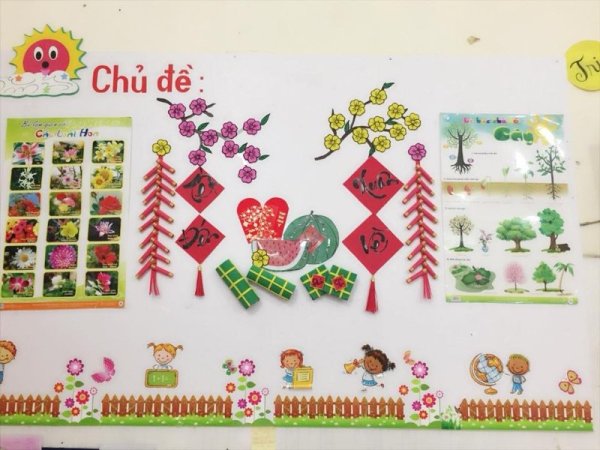 Với những lớp mầm non thì chắc hẳn các bạn nhỏ sẽ vô cùng thích thú khi được tham gia hoạt động trang trí Tết trong khuôn viên trường của mình. Các cô giáo, phụ huynh có thể cùng các bé trang trí bảng Tết đơn giản giúp các bé học thêm các kỹ năng. Ngoài ra, những hoạt động trang trí đơn giản như cắt, dán, vẽ cũng sẽ là những hoạt động vô cùng bổ ích cho các bé.