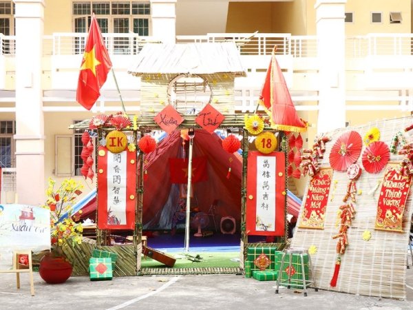 Trại Tết ở các hội trại trường, làng thường sẽ có cách trang trí khá cầu kỳ, sáng tạo. Bạn có thể tận dụng những thanh tre, gỗ để tạo nên phong cách Tết cổ truyền ấn tượng cho trại của mình. Tập trung trang trí ở phần cổng trại với nhiều câu đối, lồng đèn tết,… để tạo điểm nhấn và thu hút sự ý nhé. Ngoài ra, bạn cũng có thể tổ chức một số hoạt động, trò chơi như gói bánh chưng, đốt lửa trại để tăng thêm phần thú vị.