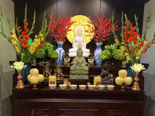 Trang trí bàn thờ ngày Tết đạo Phật với các loại hoa cảnh, trái phật thủ và tượng phật (Nguồn: bellechan87 – Pinterest) Nên trang trí đầy đủ các loại hoa quả, đèn, nến đầy ắp trên bàn thờ để cầu mong năm mới sung túc (Nguồn: ttrungthanhh – Pinterest) Ngoài ra, nếu bạn muốn cầu tiền tài thì có thể đặt thêm các loại tượng mèo thần tài vào bàn thờ (Nguồn: bellechan87 – Pinterest) MUA NGAYCách trang trí tiểu cảnh ngày Tết