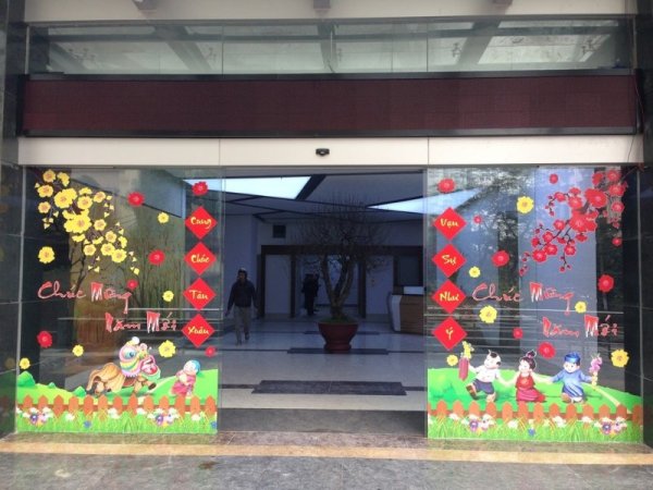 Với những phần cửa sổ kính hoặc cửa kính tại văn phòng, trường học thì dán hình là cách trang trí ngày Tết đơn giản, gọn gàng, tiết kiệm chi phí. Với phần cửa kính lớn, bạn có thể chọn những hình ảnh câu chúc, kết hợp nhiều hoa văn độc đáo. Còn với những cửa kính nhỏ thì bạn nên chọn dán hoa đơn giản để dễ vệ sinh sau Tết nhé.