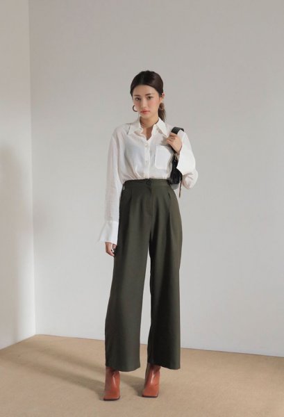 Ảnh: whowhatwear.com2. Quần tây + áo sơ miMột combo đảm bảo thoải mái và vẫn không kém phần chỉn chu, lịch sự đó là quần tây mix cùng áo sơ mi. Nếu lo rằng kiểu mix đồ này sẽ khiến mình trông cứng nhắc có phần “dừ” thì bạn có thể lựa chọn kiểu dáng sơ mi ngắn tay, họa tiết hoặc phối thêm phụ kiện để thêm phần trẻ trung.